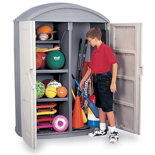 (Highboy Storage Shed (EA)). Catalog Code:(1170429),SKU:(1170429)-Here’s an attractive, weather resistant shed that offers plenty of room. It features three permanently mounted extra-deep shelves and a tall vertical storage area for all types of equipment. Two large doors lock to keep contents safely away (lock no